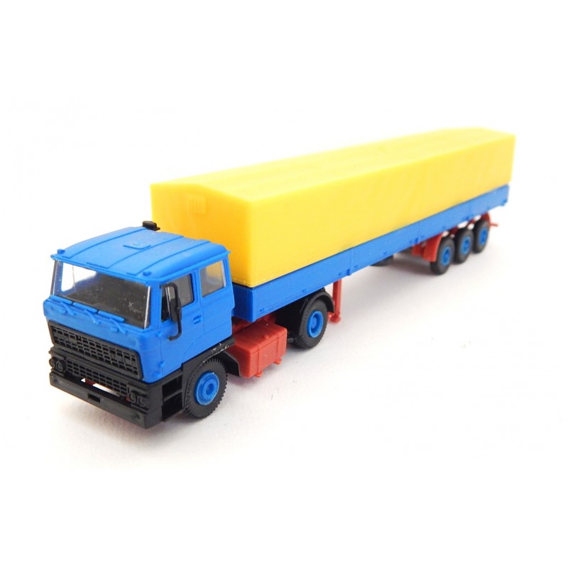 17719 KIBRI CAMIONS REMORQUE BACHER JAUNE ET BLEU HO SANS BOITE