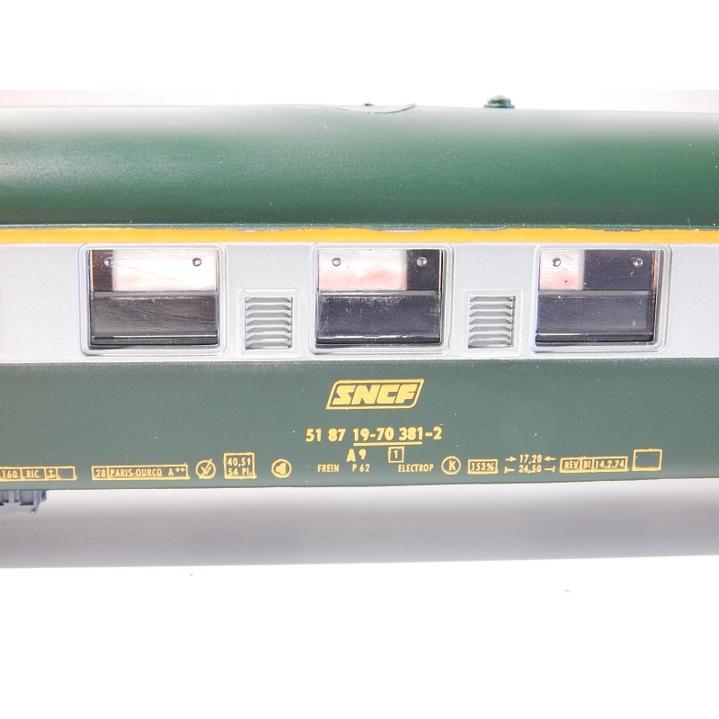 Jouef 1 Voiture UIC A9 1CL verte toit vert bande alu -