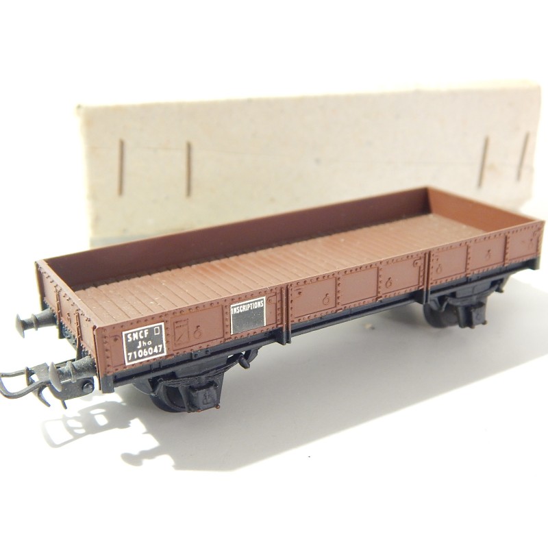 SMCF WAGON PLAT EN METAL MARRON A ESSIEUX SNCF TRES BON ETAT EN BOITE HO