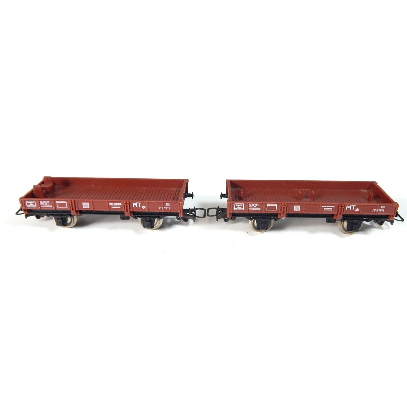 JOUEF Lot de 2 wagons plat a essieux marron claire HO