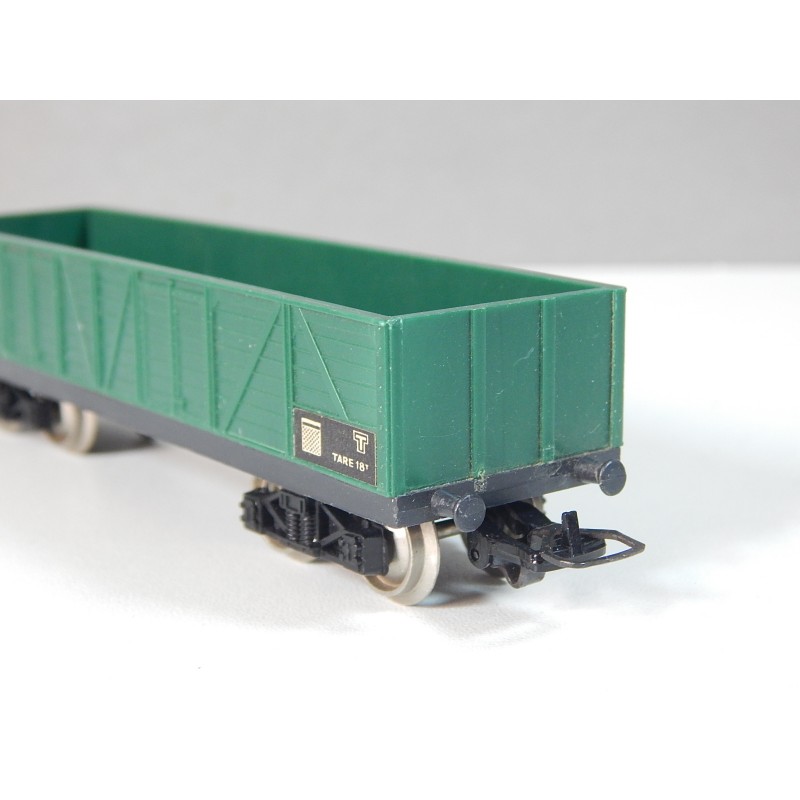 JOUEF UN WAGON TOMBEREAU TP A BOGIE VERT BOGIES NOIR HO SANS BOITE